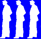 number 3 faces Man number 2 and Man number 1 and can see both their hats, but
